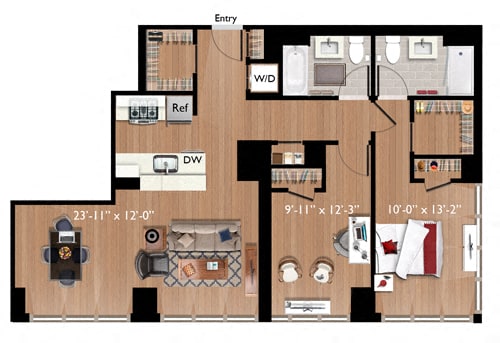 Floor plans are artist’s rendering. All dimensions are approximate. Actual product and specifications may vary in dimension or detail. Not all features are available in every rental home. Please see a representative for details.